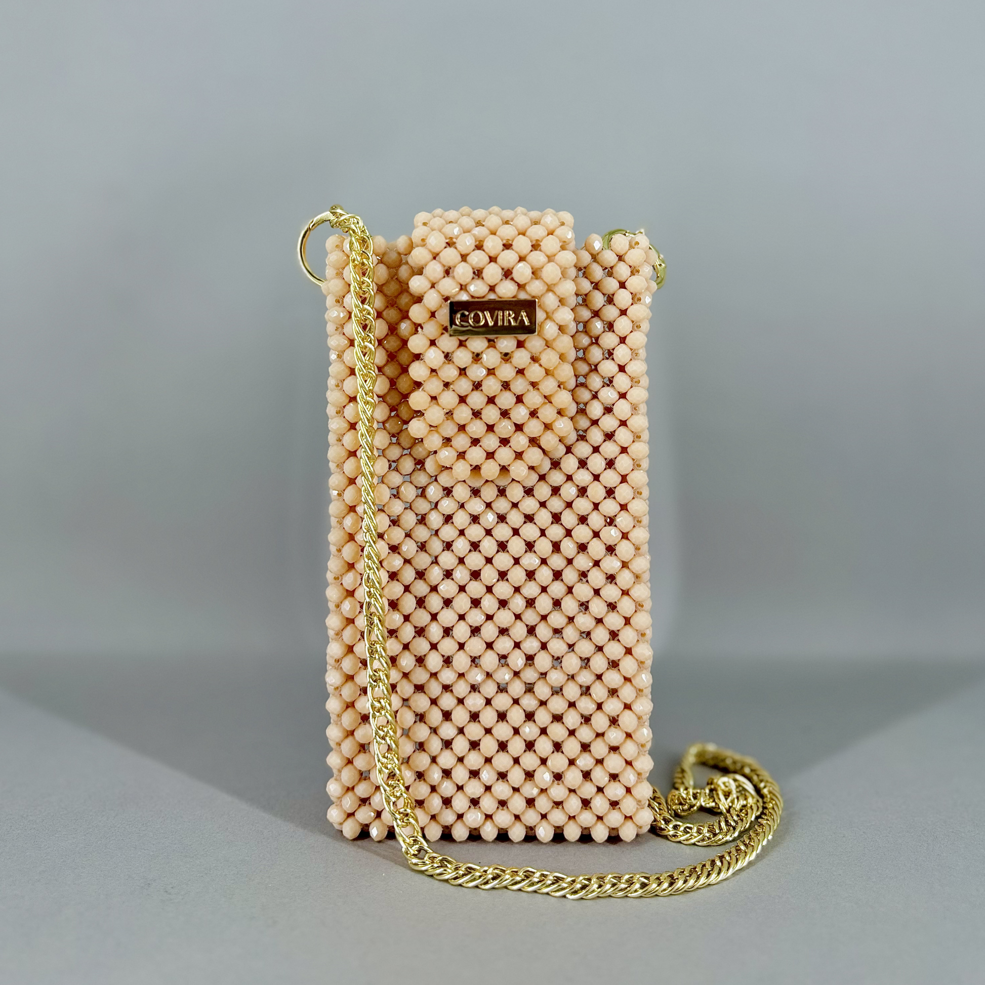The Apricot Aura mobile bag is an ode to modern sophistication, crafted with premium apricot-hued crystals that shimmer delicately with every movement. Each bead is precisely hand-threaded to create a radiant surface that catches the light from every angle. Designed to hold your phone and small essentials, this compact silhouette balances function with luxurious allure.