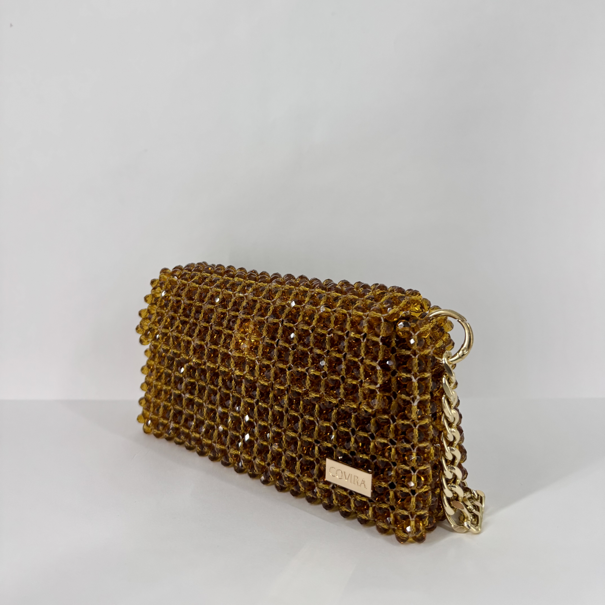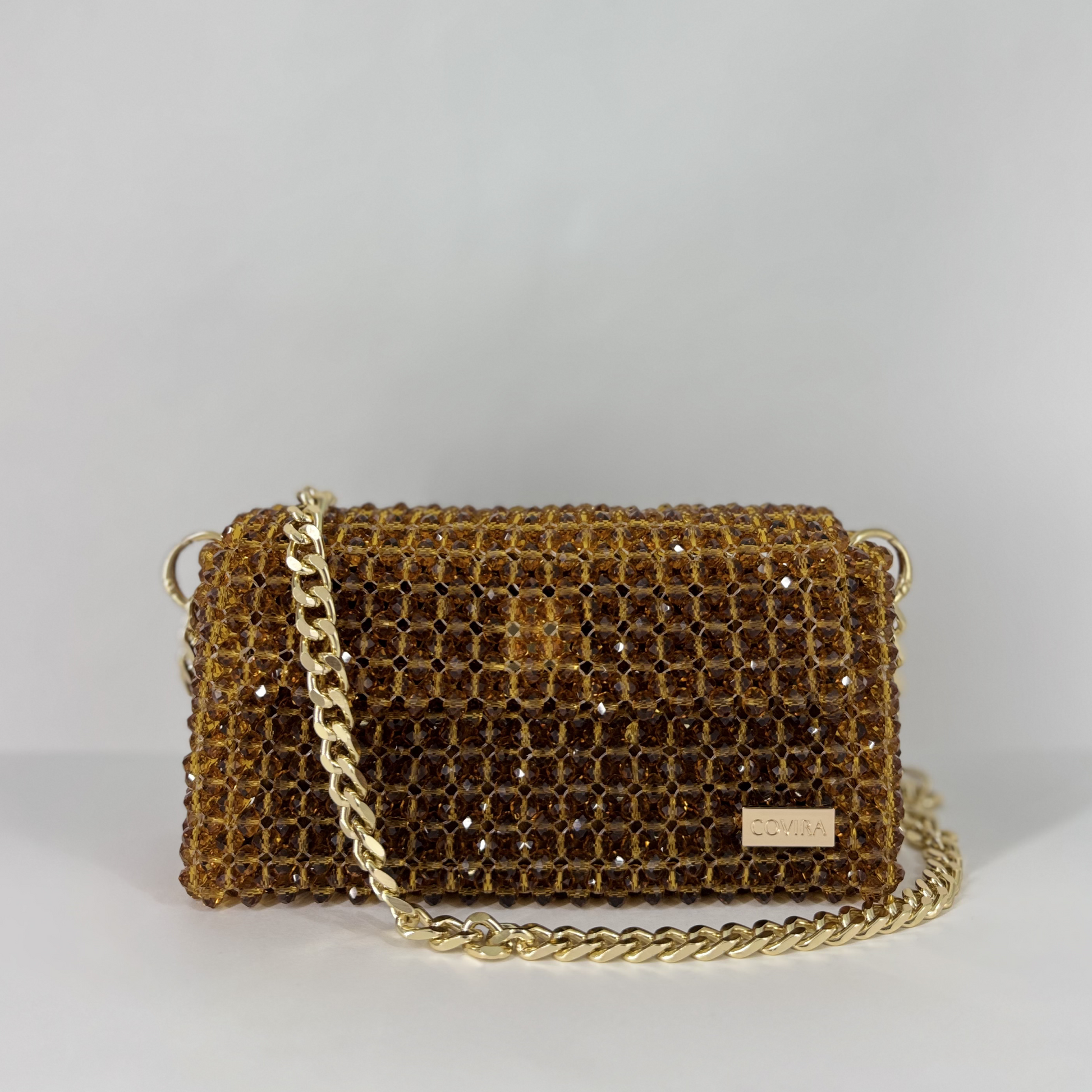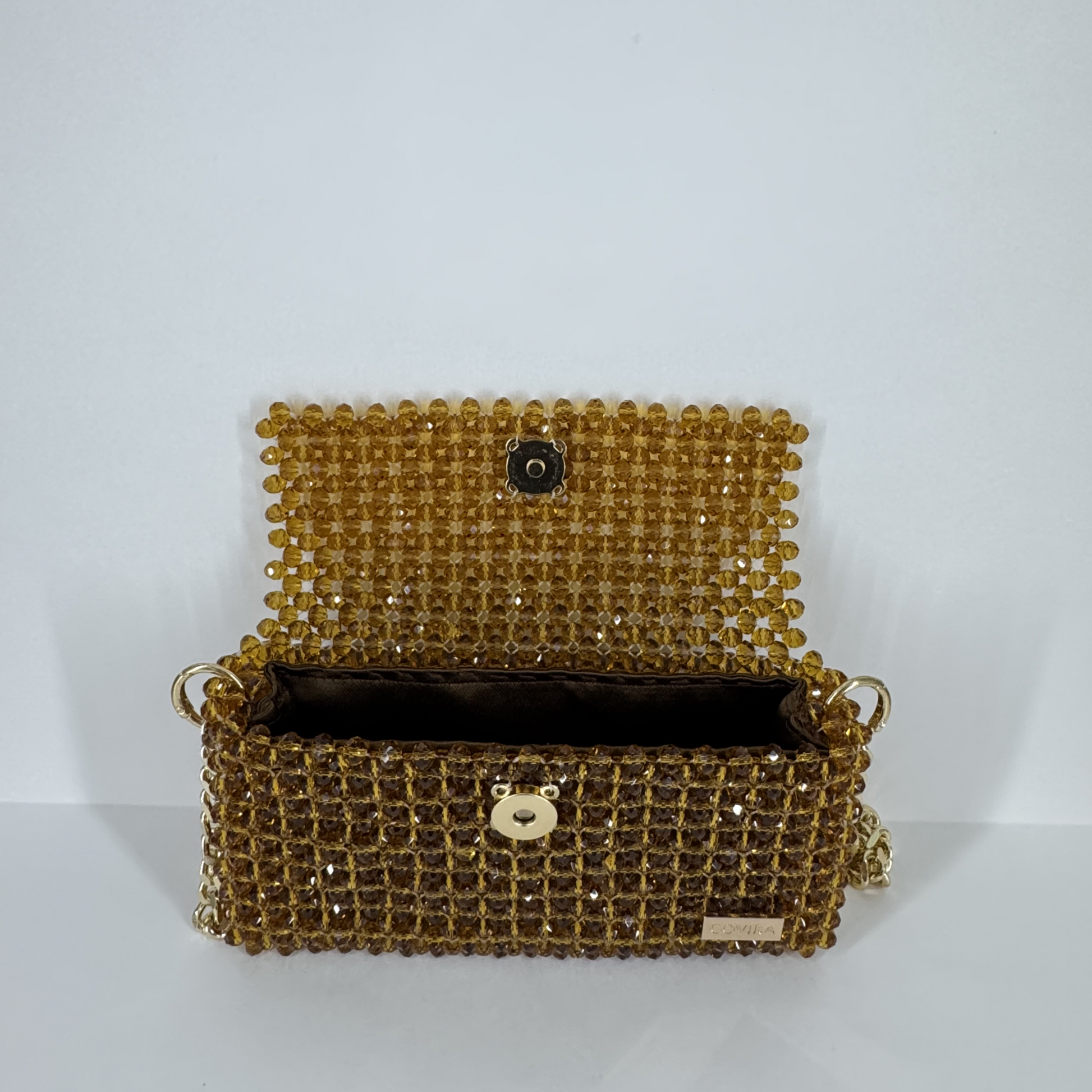 Indulge in the golden allure of Toffee Bloom, where luxury meets charm. Designed for those who love to dazzle effortlessly, this handcrafted purse is made from premium-grade golden-brown crystal beads that catch the light with every move.